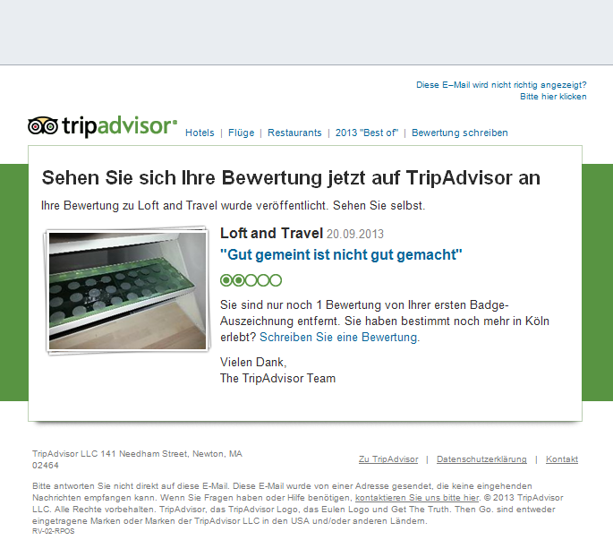 Update2 (8.1.2014): Antwort von Tripadvisor (no comment):